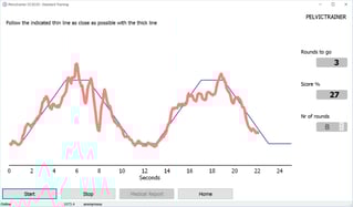 Auf dem Bildschirm können Sie sehen, wie sich Ihre Beckenbodenmuskeln anspannen und entspannen. Eine Datenbank speichert die statistischen Informationen, die für Ihren Arzt oder Physiotherapeuten zur Kontrolle Ihrer Fortschritte wichtig sind.